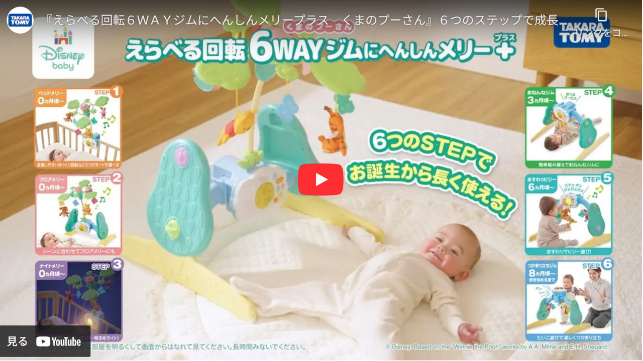 赤ちゃんの成長に合わせて長く使える、くまのプーさんのメリー・ジムです。